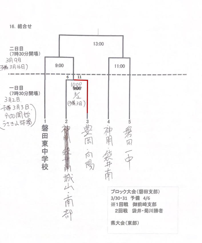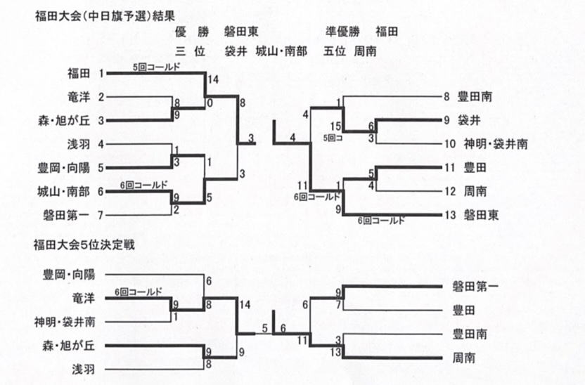 | 豊田球場 | @ | 9:00 | 城山・南部 | 対 | 浅羽 | 福田 | 福田 | - | 福田 | ||