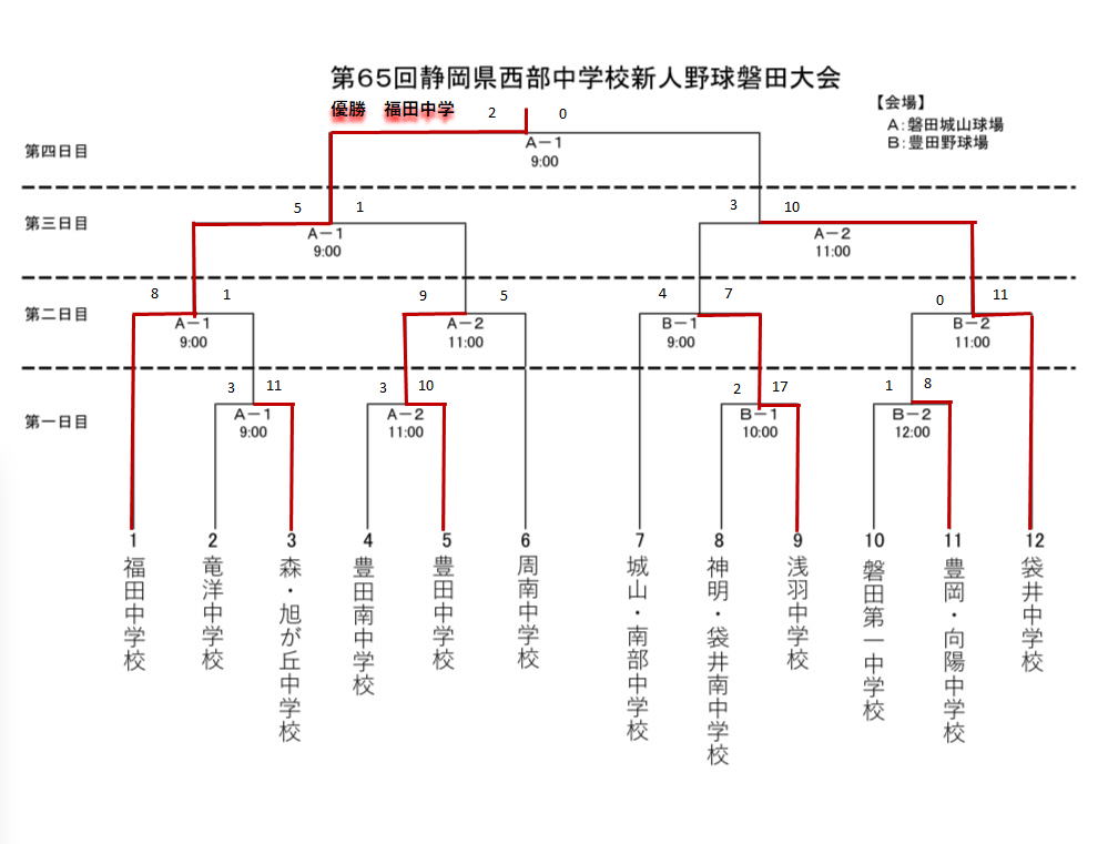 | A | 11:00 | 豊岡・向陽 | 対 | 袋井 | 福田 | 福田 | - | 福田 | |||