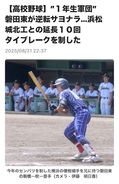 球審 2回戦 浜松城北工業高校VS浜北西高校(朝日新聞)